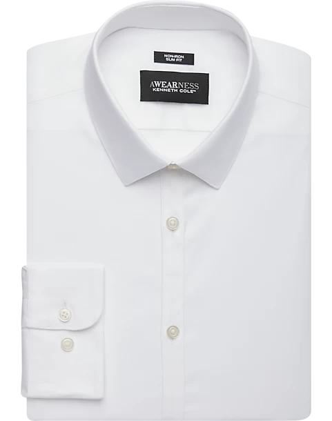 Look your very best with this stylish dress shirt by Awearness Kenneth Cole. This shirt keeps you comfortable in fine cotton blend fabric with a touch of stretch. Comfortable and in an slim fit, this dress shirt has a point collar and smooth, no pocket front. Slim Fit is slim and tapered across the chest, shoulders, armholes, waist and sleeves without compromising on comfort. Recommended for more triangle body types (broad shoulder and chest, narrow waist and hips).