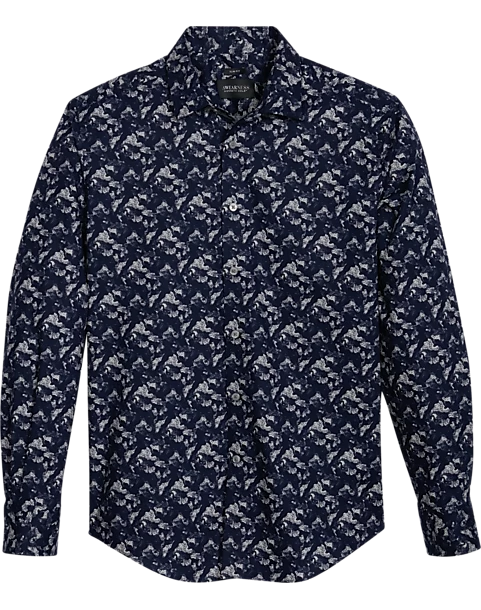 Awearness Kenneth Cole Slim Fit Spread Collar Sport Shirt, Navy Leaf Camouflage
