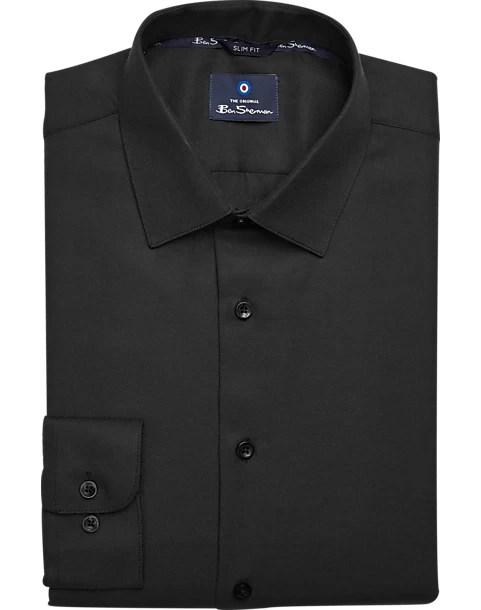 Ben Sherman Slim Fit Dobby Dress Shirt, Black Basketweave