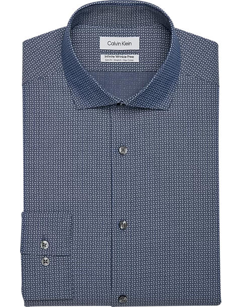 Calvin Klein Infinite Wrinkle Free Slim Fit Stretch Collar Dress Shirt, Midnight Blue Dash
