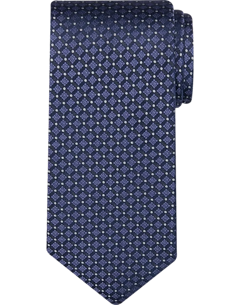 A mini diamond pattern in complementary hues gives this fine tie from Calvin Klein all the versatility of a solid color.