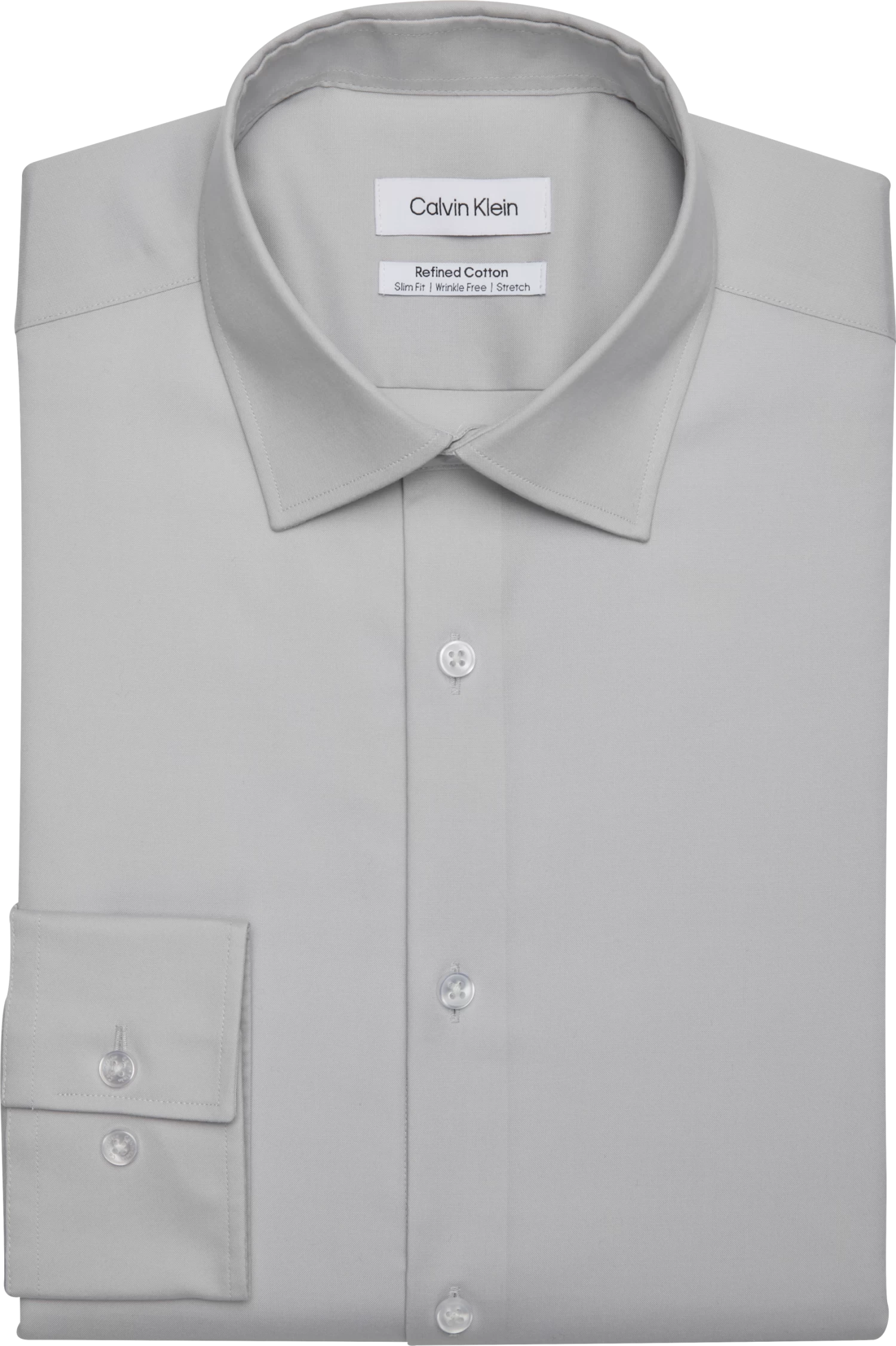 Calvin Klein Refined Cotton Stretch Supima Slim Fit Dress Shirt, Gray