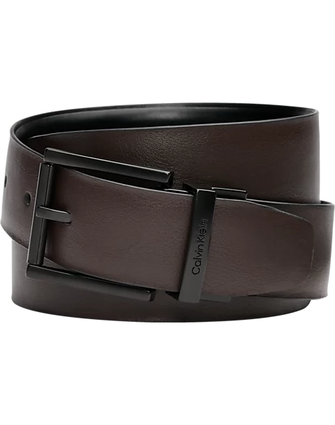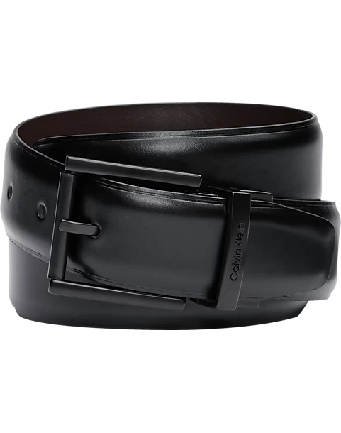 Acquire twice the style options with this chic Calvin Klein belt featuring a reversible design and CK logo along the roller buckle.