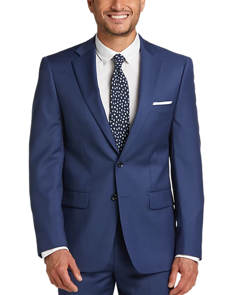 Suit separates let you choose pant and coat sizes separately for an ideal fit. This Calvin Klein X-Fit suit coat stands out in a rich blue hue. It features fine wool fabric that has a touch of stretch for comfort.
