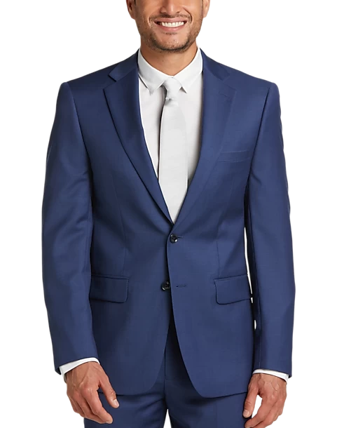 This Calvin Klein X-Fit suit coat stands out in a rich blue hue. It features fine wool fabric that has a touch of stretch for comfort. Suit separates let you choose pant and coat sizes separately for an ideal fit.