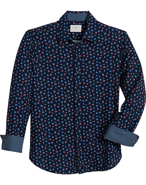 Look your best in this sport shirt that features a subtle floral pattern against a navy background. With four-way stretch and moisture wicking quick dry properties it’s an ideal go-to shirt for active days and travel.