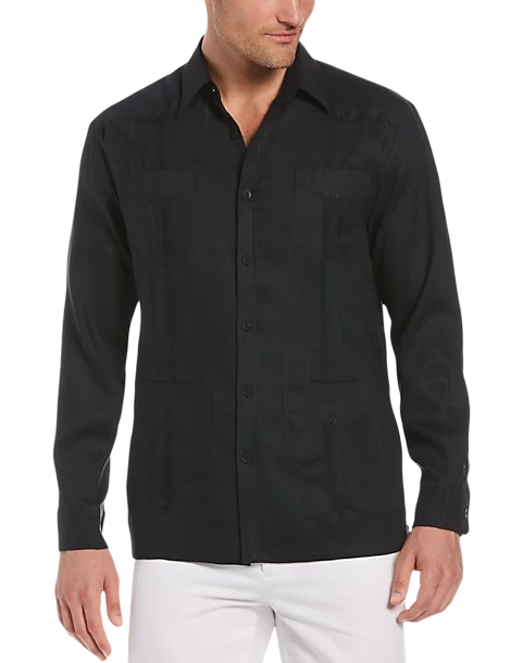 Cubavera Modern Fit Linen Guayabera Shirt, Black