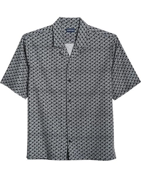 Haggar Modern Fit Short Sleeve Camp Shirt, Black Turtles