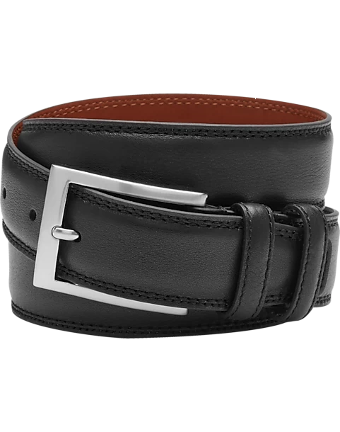 Crafted in Italy from genuine leather, this fine belt from Joseph Abboud is detailed with double stitching as well as double loops and a brushed silver-tone buckle to polish off your look.