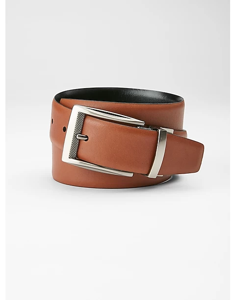 - Genuine leather|Feather edge finish|Reversible design|Silver-tone buckle|