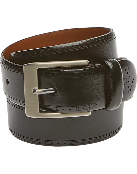 - Genuine leather|Feather edge with laser detailing|Brushed silver-tone buckle|35mm width|Joseph Abboud|