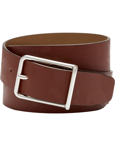 Rich Italian leather is finely etched with an artfully abstract, geometric pattern on this stylish belt from Joseph Abboud. Secured with a silver-tone buckle, it will serve as an urbane touch to your dress casual looks.