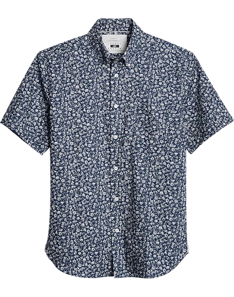 Woven into a fine fossil leaf pattern, this Joseph Abboud sport shirt has a flattering Modern Fit and short sleeves for warm weather days.
