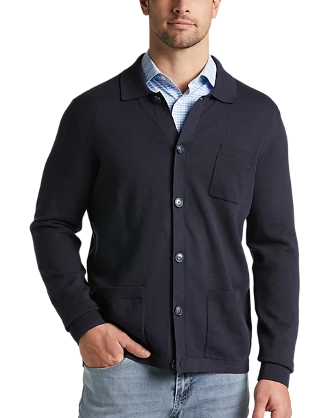 Offering an updated take on the classic cardigan this one from Joseph About features a spread collar and multiple pockets. Wear it with everything from jeans or dress pants and sport shirts or tees.