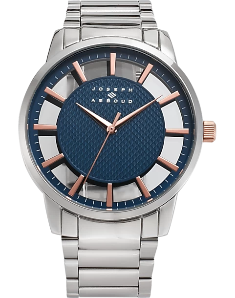 - Silver-tone metal|Stainless steel back|Analog|Rose goldtone accents|Joseph Abboud|