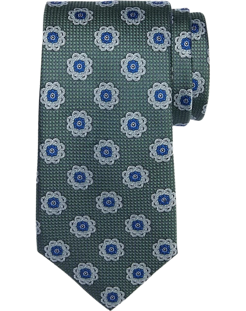 This fine silk tie by Joseph About features a contemporary medallion motif for a traditional touch with a modern update.