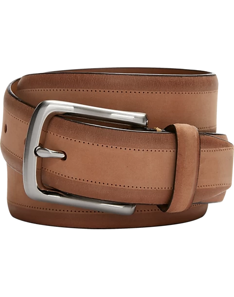 Fine perforation over a tonal panel design defines this Italian-made leather belt from Joseph Abboud.