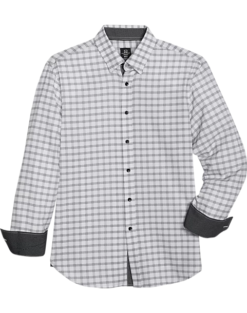 Michael Strahan Four-Way Stretch Modern Fit Sport Shirt, White Windowpane Plaid