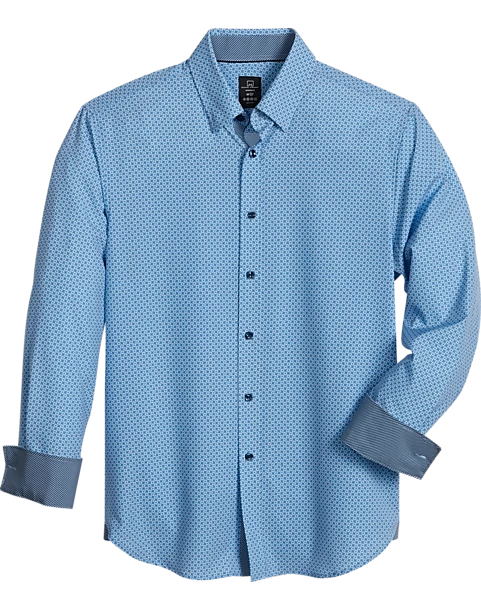 Michael Strahan Modern Fit Spread Collar 4-Way Stretch Sport Shirt, Blue Geo Starfish