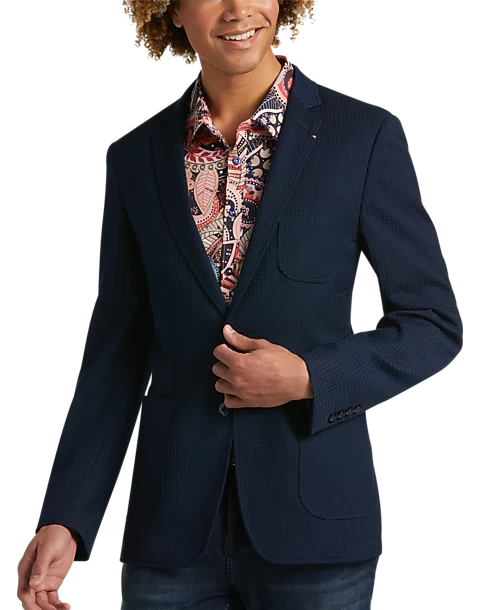 In a flattering Slim Fit, this textured knit sport coat features a comfortable poly blend fabric for comfort while looking your best.