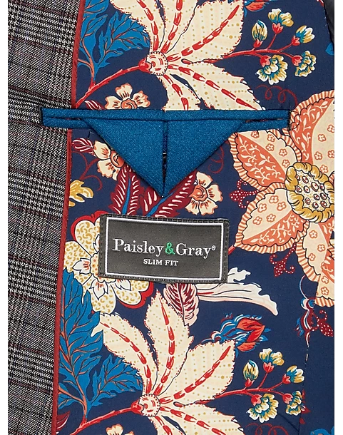 - Polyester blend|Notch lapel|Two-button closure|Flap pockets|Coordinating pieces sold separately|Slim Fit|Paisley & Gray|