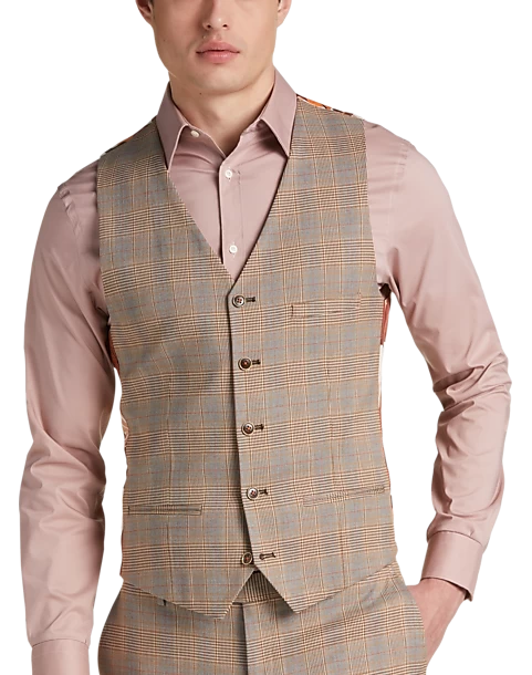 Add that finishing touch with a vest that features a plaid pattern in tan and gray. It’s part of Suit Separates which lets you choose your coat, pants and vest sizes separately for your best fit ever.