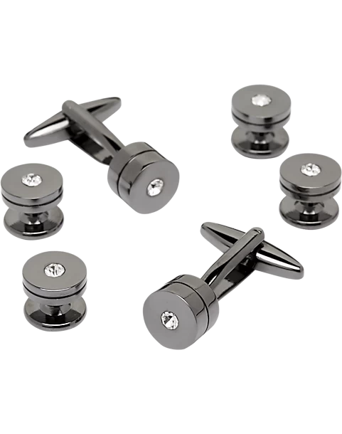 Pronto Uomo Black & Rhinestone Cufflink And Stud Set