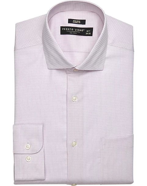 In an easy-care, no-iron cotton, this dress shirt is a great addition to your wardrobe. The classic fit is styled for wearable comfort all day. Classic Fit has more room in the chest and shoulders, with traditional armholes and fuller sleeves without being baggy. Recommended for fuller body types (large shoulders and upper arms, and a fuller waist).