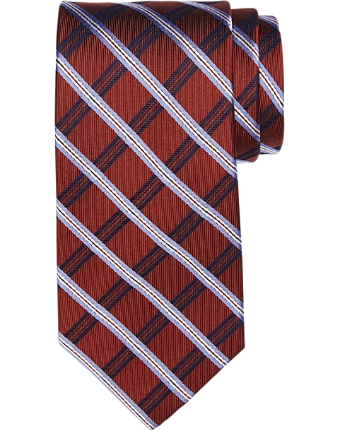 Crisscrossing stripes create a subtle plaid pattern on this fine silk tie from Pronto Uomo for two looks in one sophisticated design.