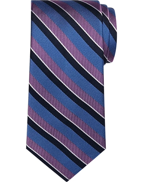Stripes in retro-inspired hues bring a vintage vibe to this rich silk tie from Pronto Uomo.