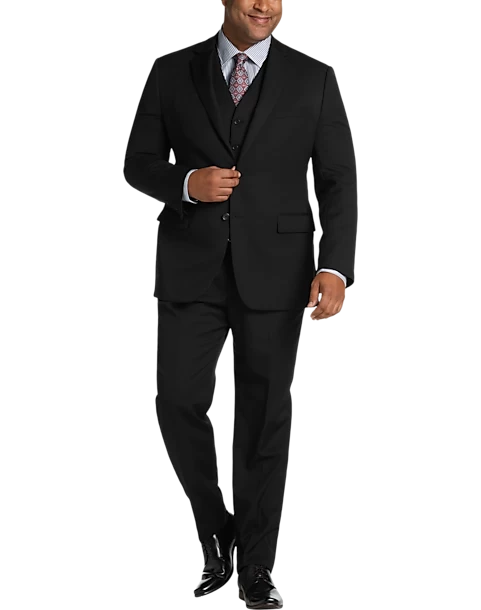 In a classic black, this suit separates coat has a notch lapel and two-button closure. Pair it with its matching vest and slacks (sold separately) for a perfectly coordinated look in just the sizes you need.