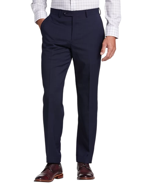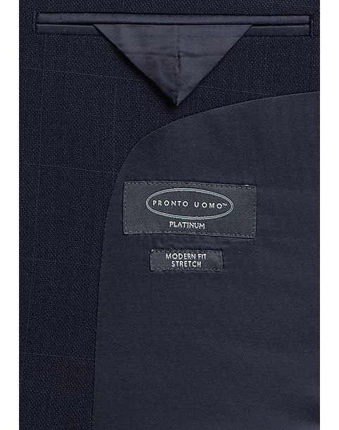 - Wool blend|Two-button jacket|Notch lapel|Side vents|Flat-front slacks|Modern Fit|Pronto Uomo Platinum Platinum|