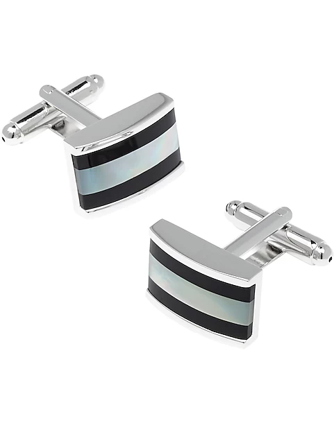 Featuring a modern design with polished silver-tone metal, black enamel, and mother-of-pearl, these stylish cufflinks have the sharp, modern style that is an ideal way to top off your look.
