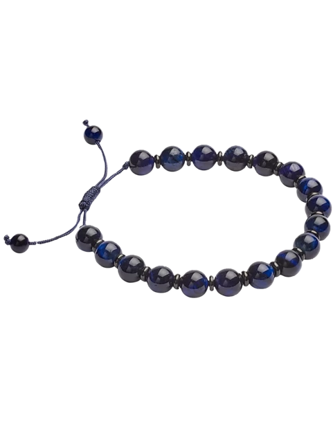 Crafted from smooth blue tiger eye with gunmetal spacer beads, this fully adjustable bracelet makes a handsome gift or addition to your look.